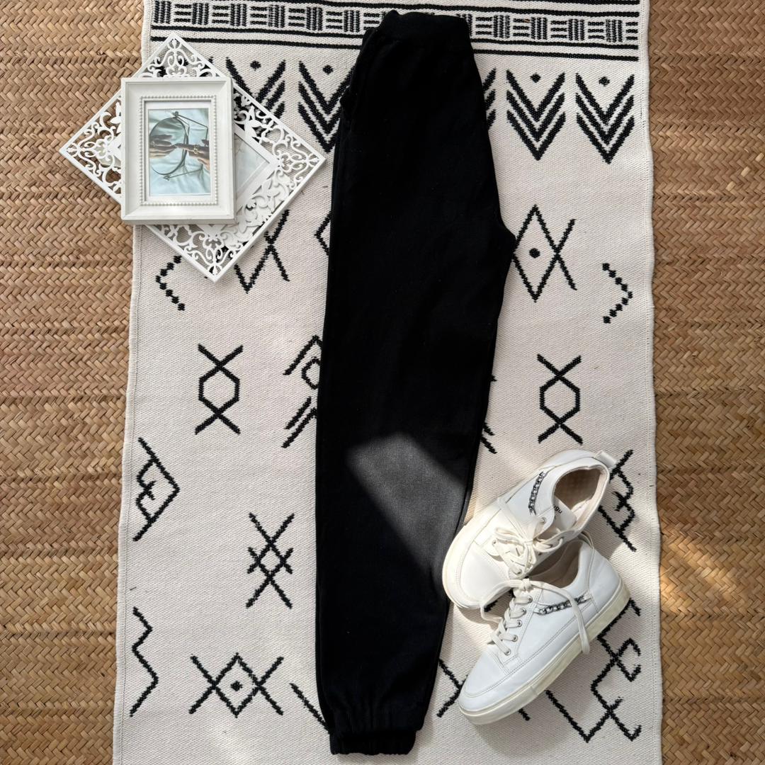 قسمت کمر شلوار کش دوزی شده و به علت کشی بودن کمر شلوار اندازه ها متغییر و در حالت عادی خودش را جمع میکند